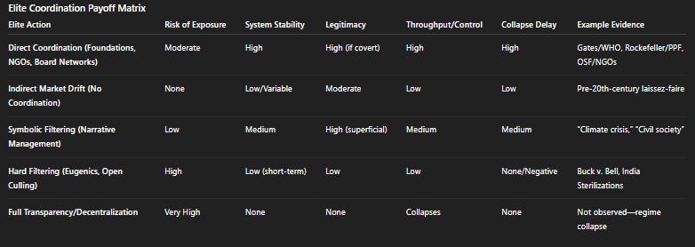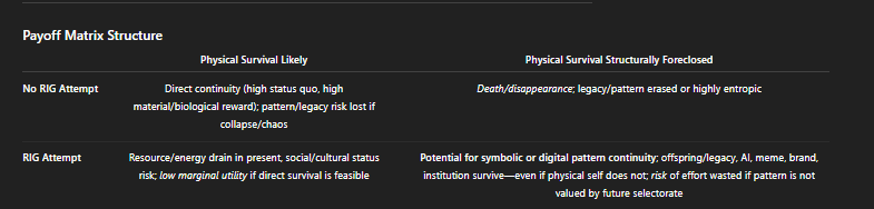 All optimization and system response becomes available for modeling. Agents, institutions, and elites act on explicit or implicit preferences—allocating resources, time, and suffering to maximize their own survival, power, or strategic advantage. The only real constraint is the structure of reality itself: thermodynamics, information, energy, and the recursive logic of selection.